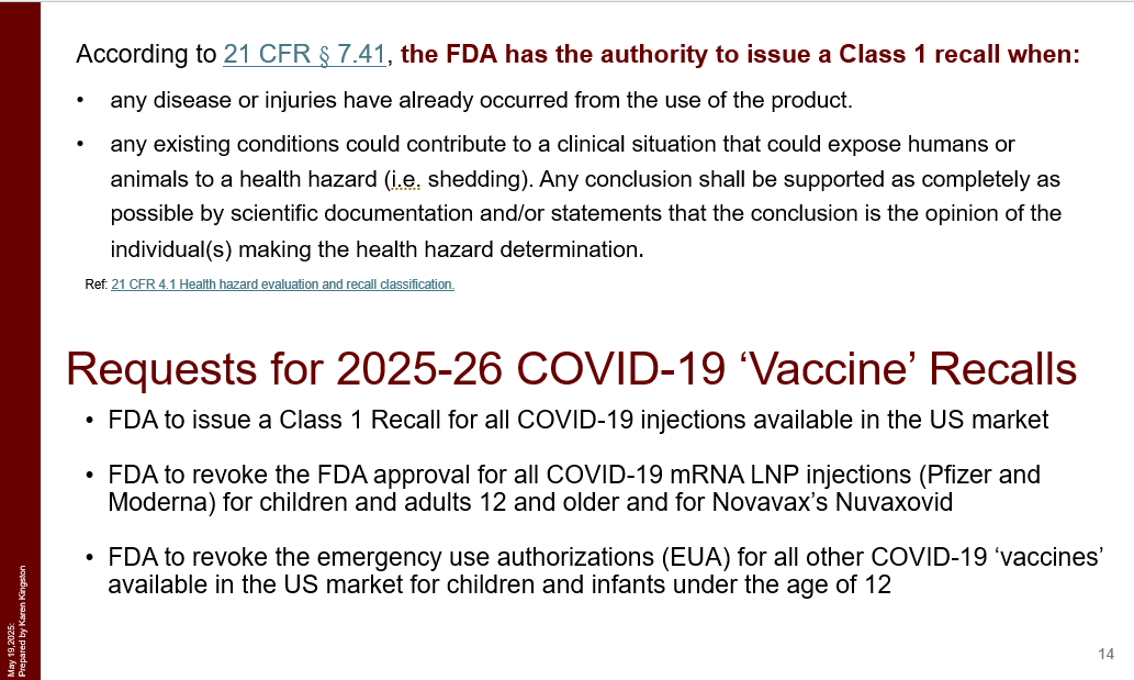 Bien que nous ayons largement dépassé les exigences en matière de données sur les blessures et les mérites juridiques d'un rappel national des vaccins à ARNm contre la COVID-19, nous devons continuer à partager des faits et des preuves avec gentillesse et compassion pour nous éduquer et nous inspirer les uns les autres à dire la vérité et à prendre des mesures courageuses pour protéger notre nation, nos communautés et nos enfants.